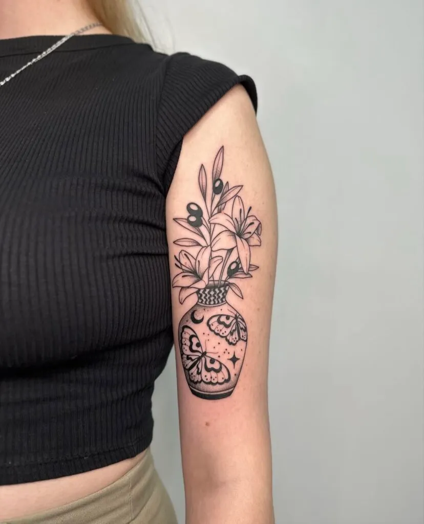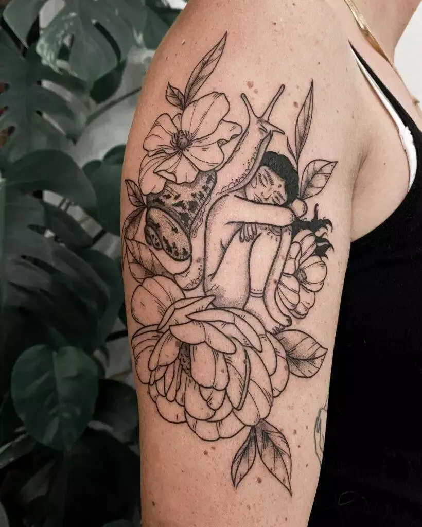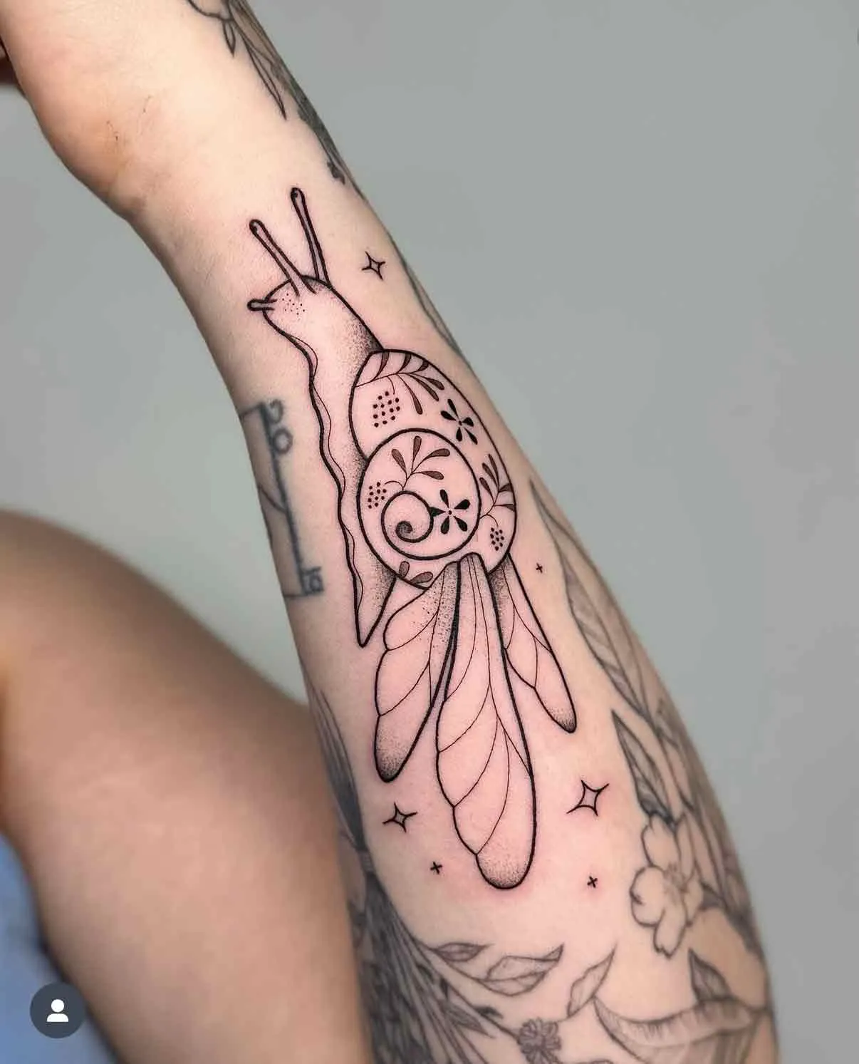 Mit ihrem illustrativen Stil kreiert sie Designs, die Zufriedenheit und Ruhe ausstrahlen und erschafft damit Tattoos mit Wohlfühl-Gefühl.