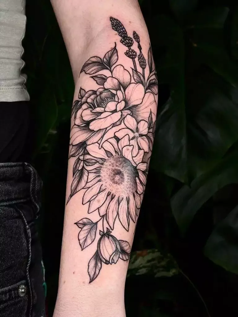 Die Inspiration der Natur findet sich jedoch nicht nur in ihren blumigen Motiven, sondern auch in Ihren Mandalas wieder. Dabei arbeitet Sie mit Dotwork als auch dicken Linien.